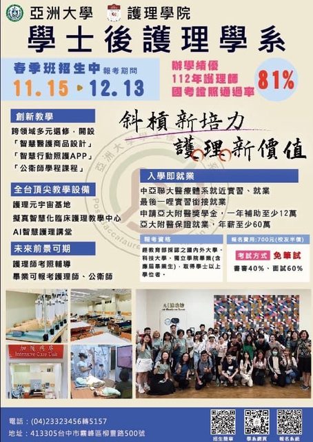 標題亞洲大學學士後護理學系113學年度春季招生