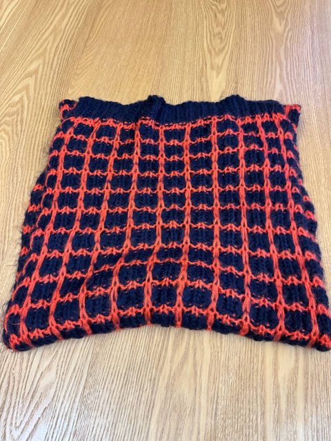 3.橘藍格厚長圍巾(二手)