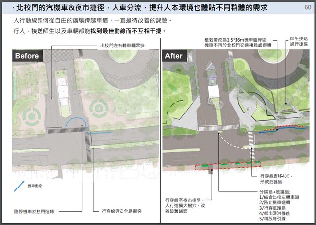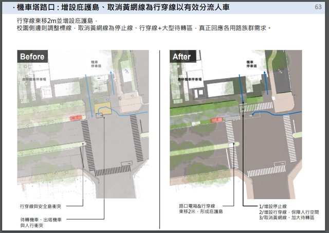行人庇護島、轉角人行道擴大、紅綠燈更換、增設行人紅綠燈 等多項工程