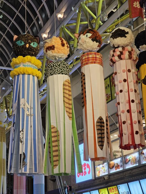 沿途掛滿了くす玉,也就是和紙做的吊飾,