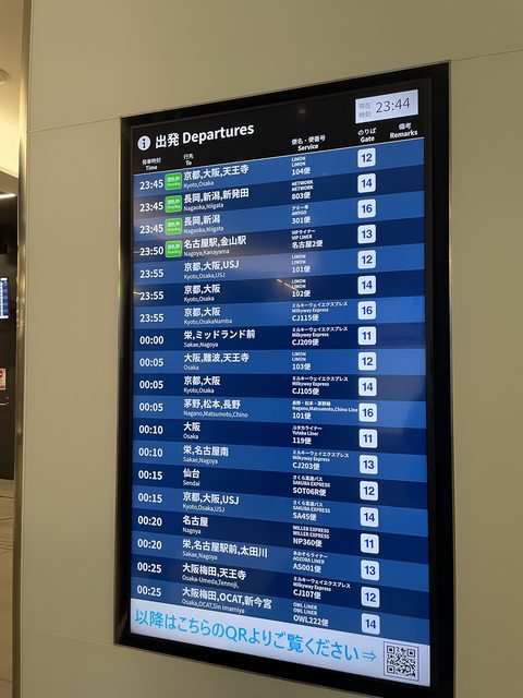 八重洲轉運站B2 23:55發車