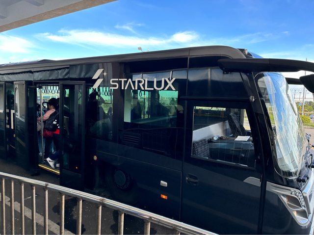 從桃園機場出境後是搭乘接駁巴士前往搭乘飛機,覺得巴士很可愛幾乎人人都拿出手機拍