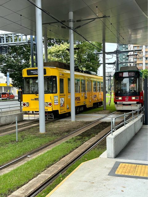 ,到達以後搭乘路面電車到「熊本城市役所前」站,即可到櫻之馬場城彩苑、熊本城。