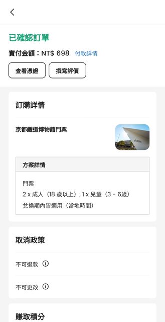 1.物件:Klook京都鐵道博物館到10/13(兩大人一小孩)