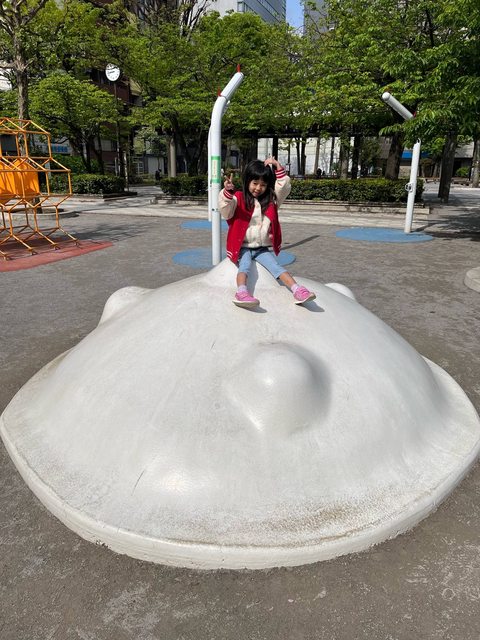 和服歸還後我們準備到晴空塔吃午餐,結果媽媽我開始非常不舒服,虛弱到沒辦法做什麼事。老公只好帶著女兒先送我回飯店,然後帶女兒去附近公園放電。