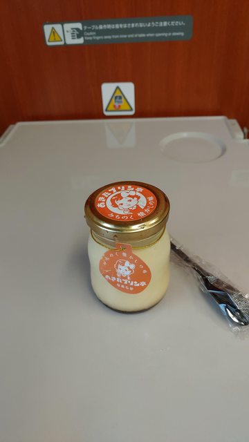 由於雨勢未歇,決定行程就到此為止,買了布丁跳上秋田新幹線。