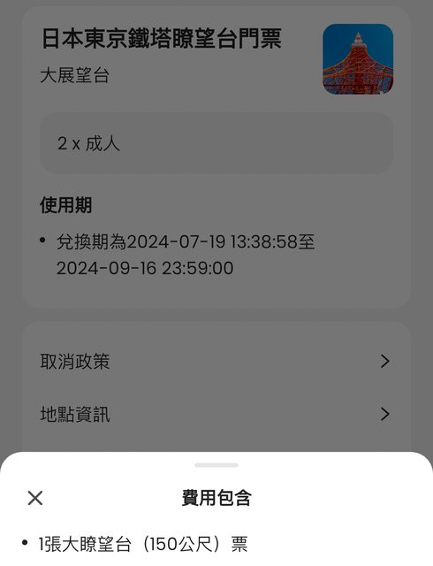 東京鐵塔瞭望台門票 成人2張