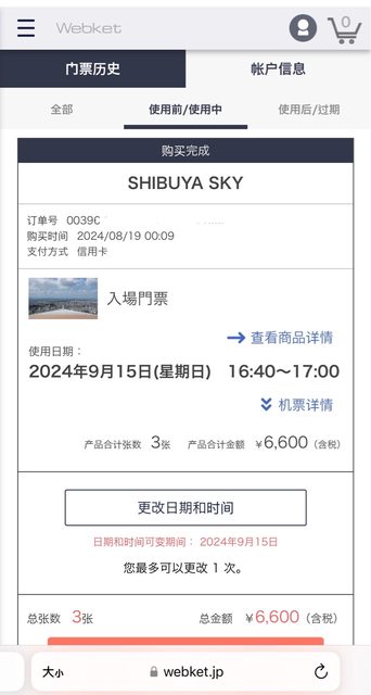 標題[讓售] 9/15 Shibuya sky門票*2