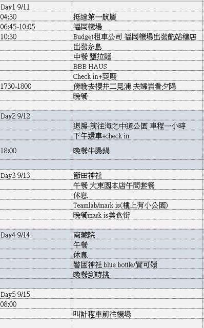 標題[問題] 9/11-15福岡4大1小行程請益