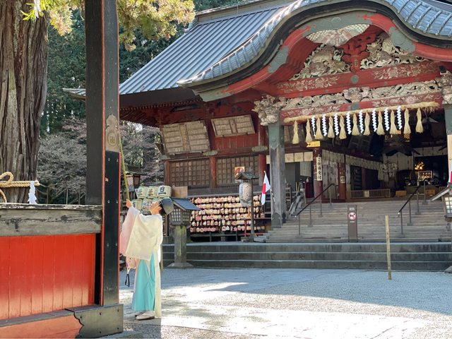 主殿 一旁的千年杉木與檜木 木造鳥居