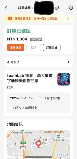 標題[讓售] 9/15 teamLab 無界