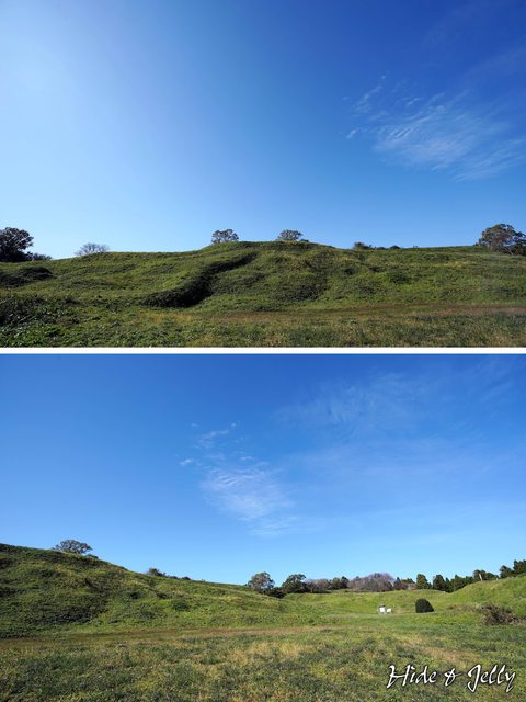 主郭部比起內館,芒草更多了。芒草的前方,真的很像抹茶麻糬耶!(突然想吃)