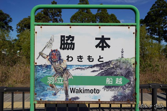 車程大約40分鐘,就可以抵達脇本駅。男鹿線沿線的車站牌,都會畫上生剝鬼。