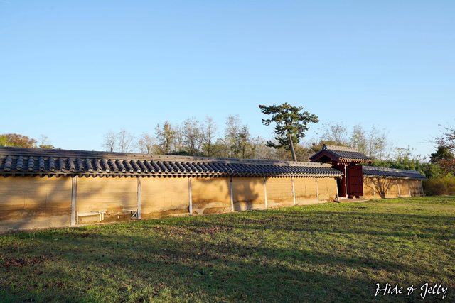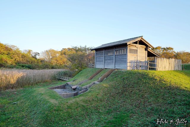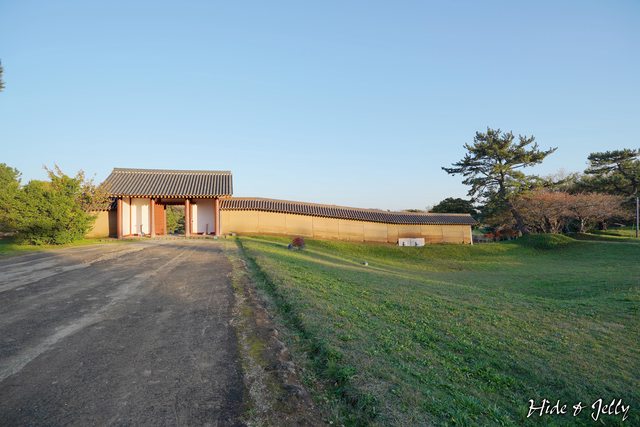 外郭東門的東側,就是「古代水洗廁所」復元的位置,我們第一次看到古城的復元建築物