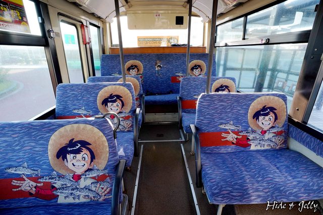 車內的座椅突然出現了魯夫,啊!不是啦,是戴著斗笠捕魚的漫畫人物,蠻特別的耶。