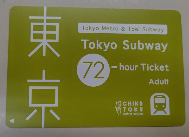 72小時可無限次搭乘東京地鐵和都營地鐵全線!