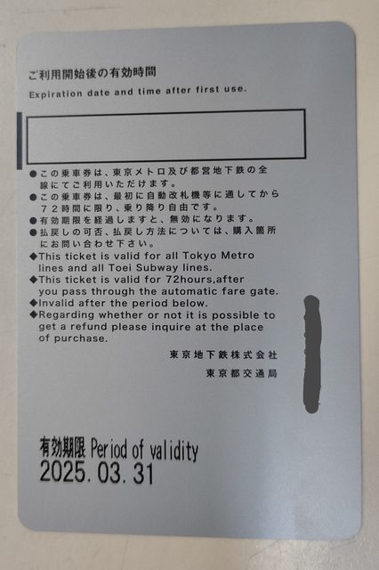 標題[讓售] 東京地鐵乘車券72小時卷 *1