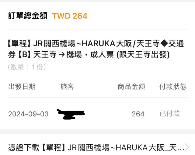 標題[讓售] HARUKA天王寺到關西空港*1