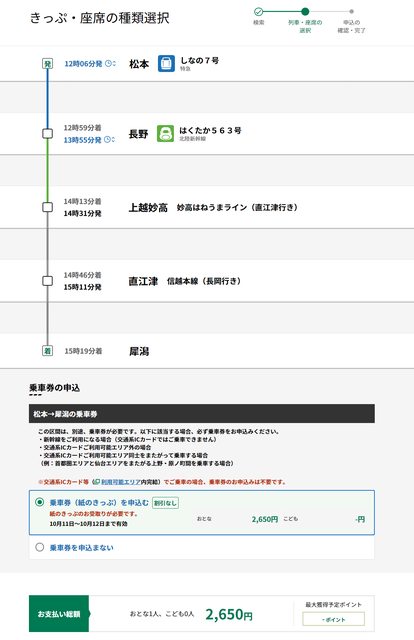 就改開松本---長野---上越妙高---直江津---犀潟連絡乘車券
