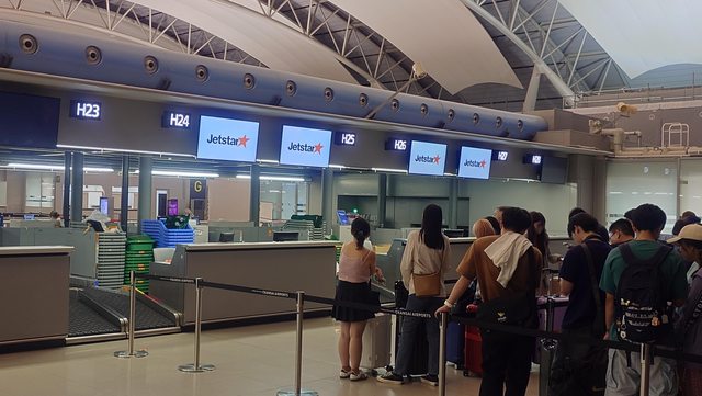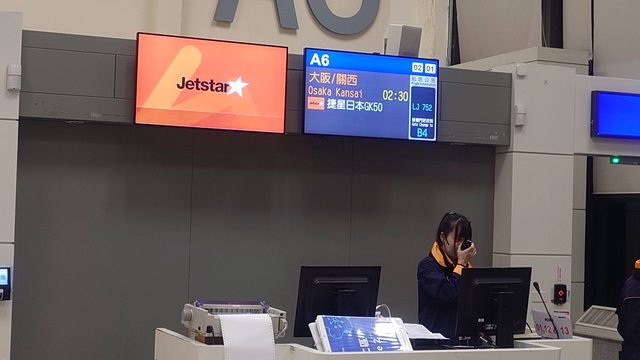 主要是多了換下來的鞋子擔心會超過,幸好順利控制在6公斤左右,去捷星櫃台排隊