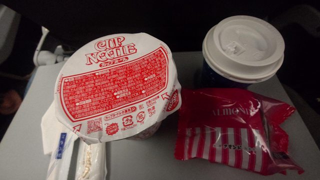 起飛後點一碗泡麵以及巧克力蛋糕跟熱湯當作晚餐