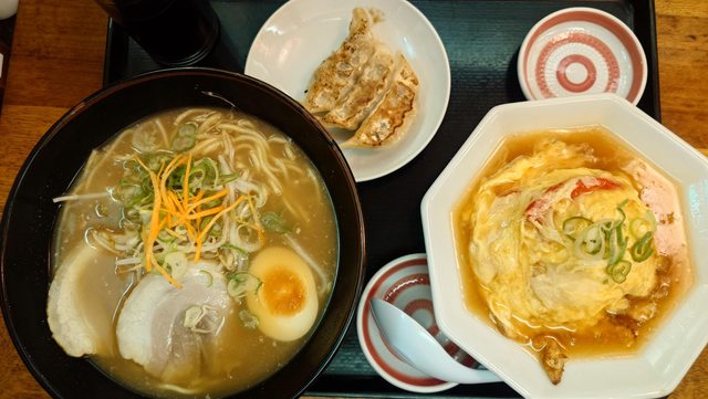豚バラ古潭らーめん 860円,迷你天津飯與3個餃子的set加460円