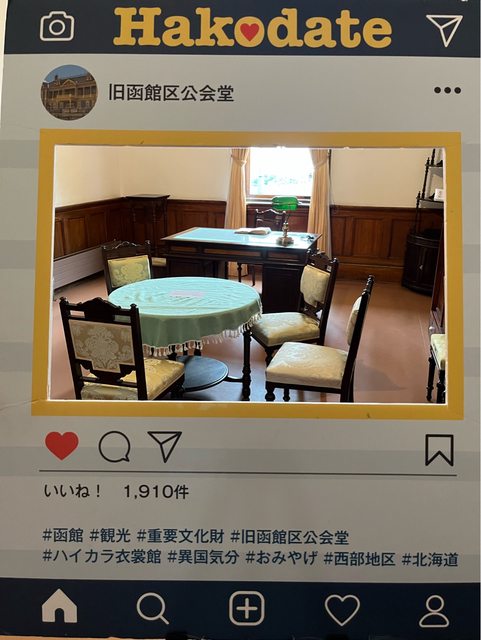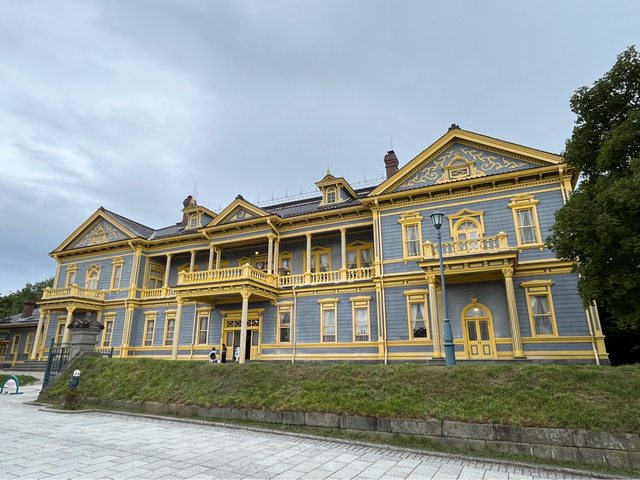 接著搭市電到末広町站,走到舊函館町公會堂約6分鐘。這棟顏色亮麗的西洋式兩層木造