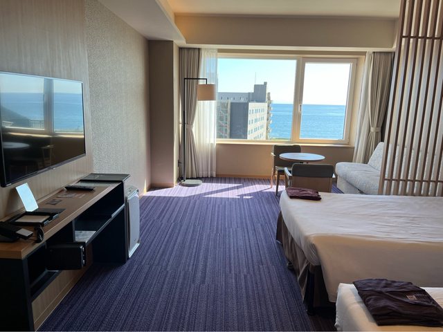房間蠻大的,6樓可些微看到海景。頂樓(12樓)的溫泉類似無邊際泳池的設計,也可欣