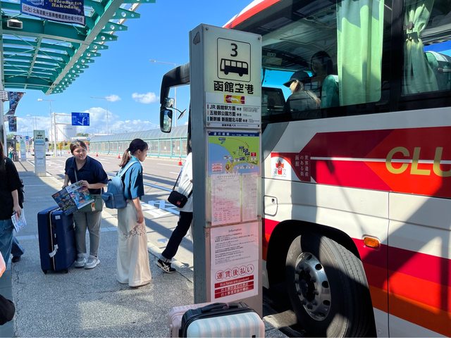 走回飯店拿行李,在飯店對面的站牌、搭公車到函館駅。