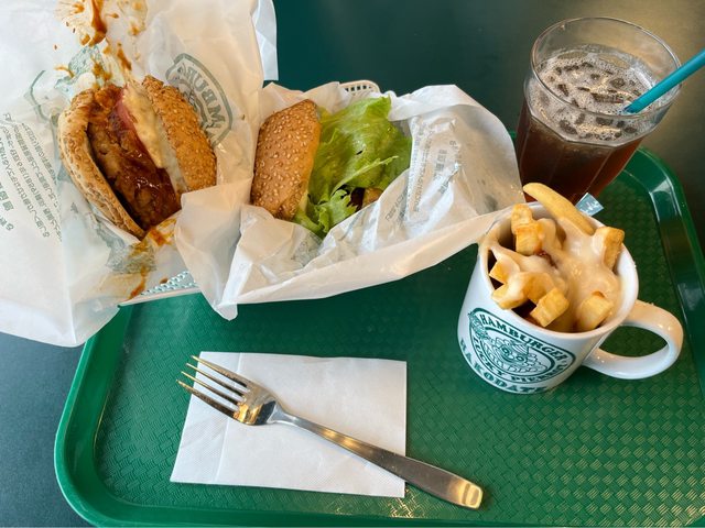 多而放棄。這次只排了一下,點了前兩名的中華雞肉漢堡套餐(968円)及幸運蛋漢堡(5