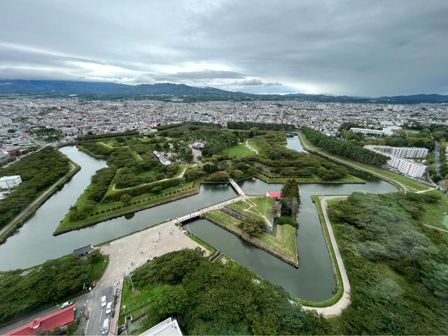 在五陵郭公園前站下車,約走10分鐘到五陵郭塔,用4點兌換展望台門票,登上展望台除