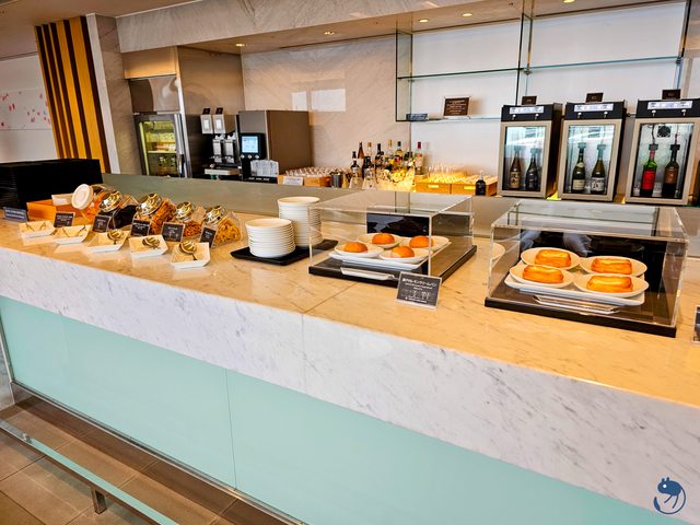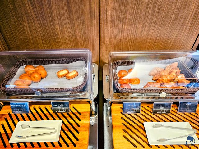 另外,千萬別錯過這個在點餐櫃檯對側的小小麵包區,這裡的麵包跟日航商務艙一樣,都