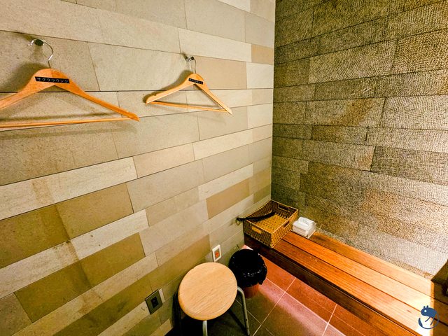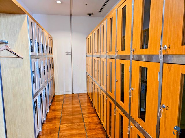 二樓手扶梯旁有衣帽間與45個置物櫃,有鑰匙型也有密碼型,放登機箱也沒有問題。像我