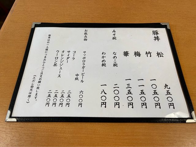 豚丼的菜色都相同,差別在烤肉的份量。我點了梅+裙帶菜湯(1,330円),烤肉片軟嫩好