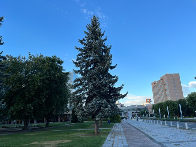 吃飽後,原本想沿著車站南口的公園大通散步到緑ヶ丘公園,不過距離有點遠(約要走20