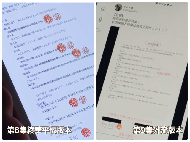 從綾華的平板可以看到,契約上超過一半的條款都畫線刪除了,然而第9集流出炎上的,