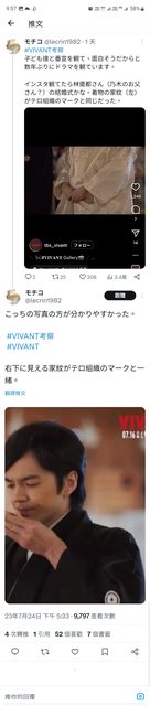 推 kandaxa: 回去重看ep1 乃木手機桌面除了有VIVANT資料夾以外 用慢動 07/25 22:46