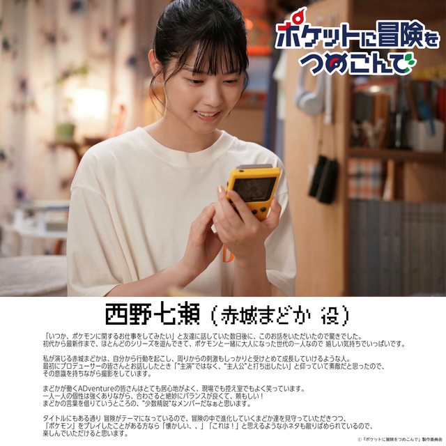 まどか役を務める西野は、ポケモン好きを公言。「『いつか、ポケモンに関するお仕事
