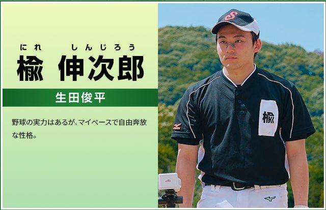 官網對他的介紹是「被野原拉來參加棒球社」