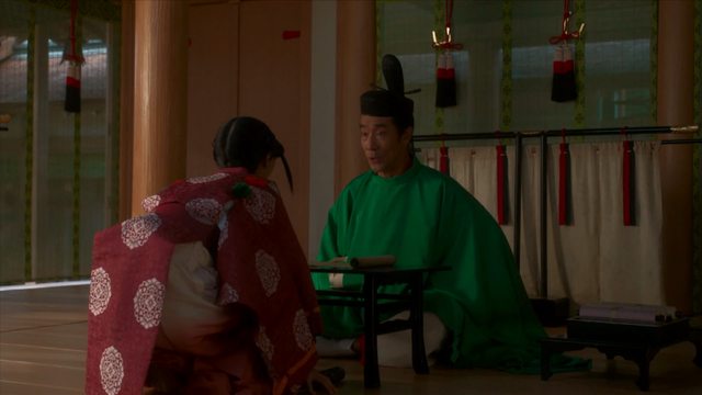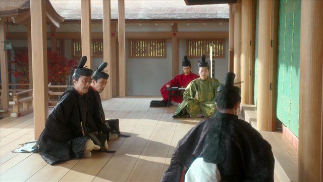 階而不同。四位以上穿黑色、五位穿紅色、六位及七位穿綠色。劇中關白藤原賴忠、左大