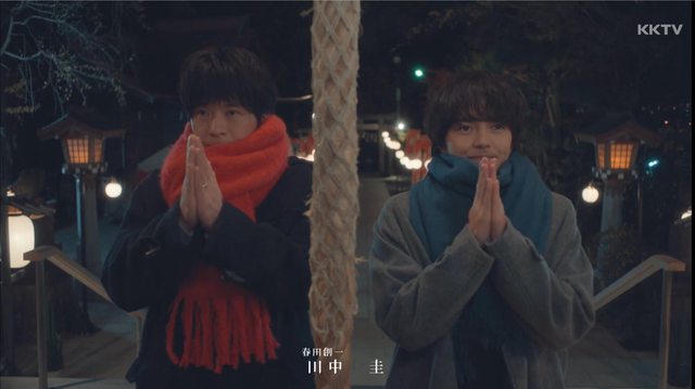 寫起來感覺第一集就發生了好多事情,雖然中間春牧吵架了,但最後牧在路上看到圍巾,想起春田的弄不見了,買給他當禮物。幫他圍圍巾的畫面搭配漫天飛雪好美啊!春田半個頭埋在大大厚厚的圍巾裡好可愛啊!