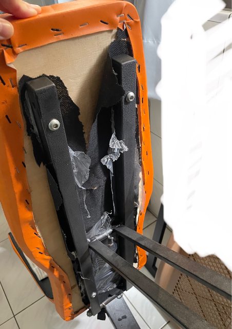 少用,可正常調整角度,但椅背後後面的包覆材料已脆化破裂,請斟酌。