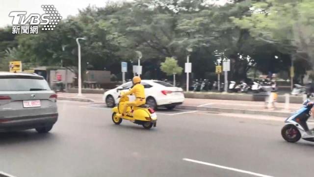 色,騎乘著一輛黃色的偉士牌機車,成為高雄市區各大路口的獨特風景。不少網友猜測他