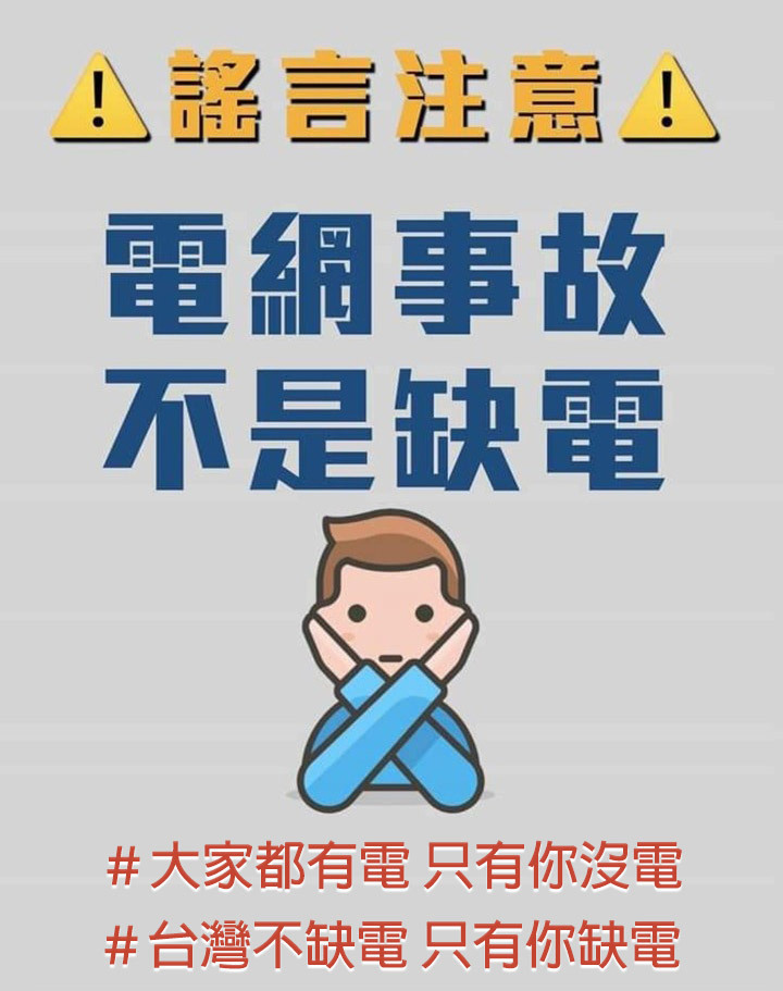 推 Darkdrongo98: 想問各位大大,這次的停電是缺電造成的嗎 07/21 11:27