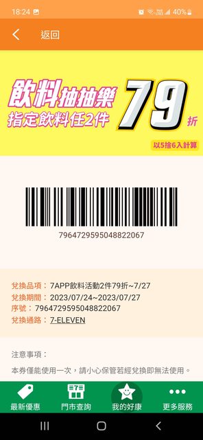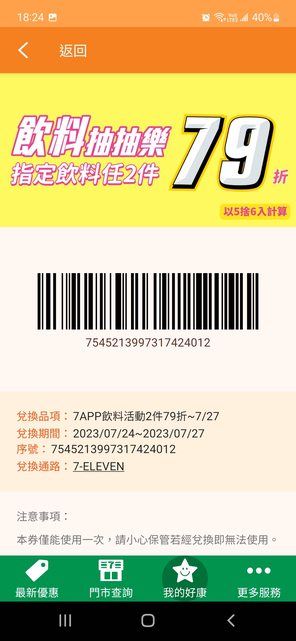 物品名稱:7-11飲料抽抽樂59折&79折