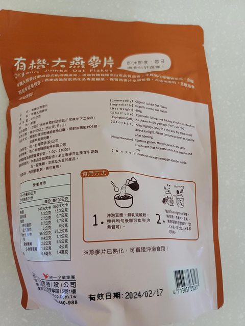 1.(已換出)統一有機大燕麥片 1包