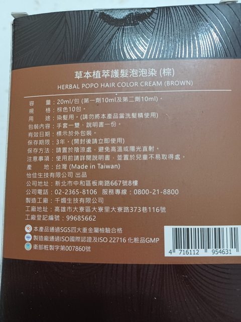 3.草本護髮泡泡染(棕),有三盒