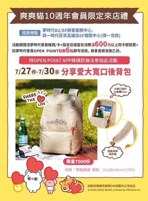 1.夢時代爽爽貓寬口後背包