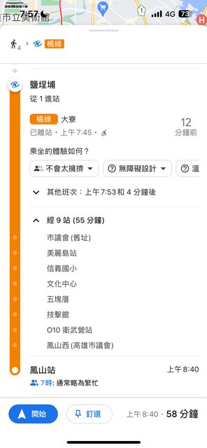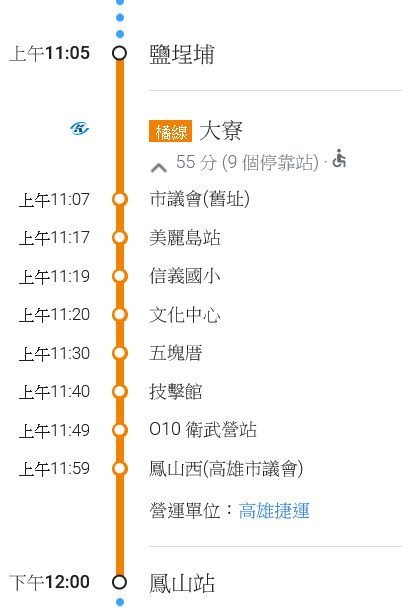 不知道是什麼問題,捷運橘線鹽埕埔站到鳳山站,捷運網站上顯示行車時間應該是15分鐘