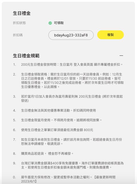 犀牛盾生日禮金$200折扣碼